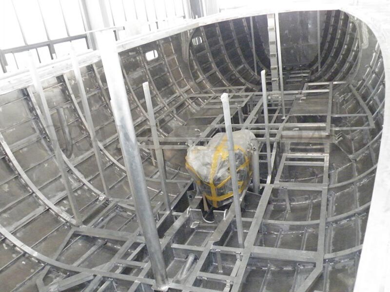 After hull main structure welded ready then turn the hull over, then starting welding hull inside again.